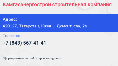 Камгэсэнергострой, строительная компания по адресу 420127, Татарстан, Казань, Дементьева, 2в в дальнейшем Организация, размещена в следующих категориях: