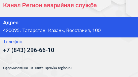 Канал-Регион, аварийная служба по адресу 420095, Татарстан, Казань, Восстания, 100 в дальнейшем Организация, размещена в следующих категориях: