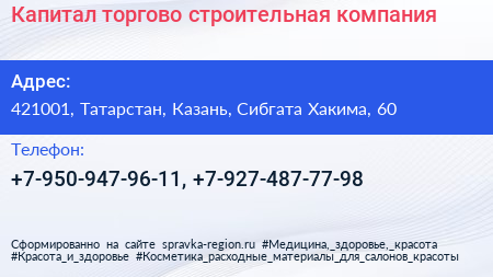 Капитал, торгово-строительная компания по адресу 421001, Татарстан, Казань, Сибгата Хакима, 60 в дальнейшем Организация, размещена в следующих категориях: