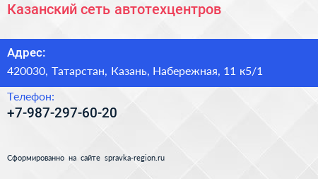 Казанский, сеть автотехцентров по адресу 420030, Татарстан, Казань, Набережная, 11 к5/1 в дальнейшем Организация, размещена в следующих категориях:
