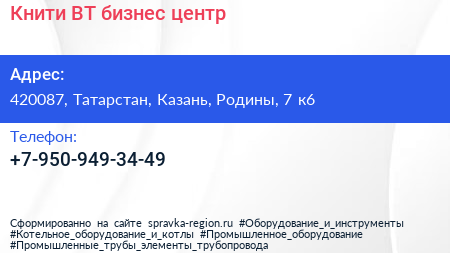 Книти ВТ, бизнес-центр по адресу 420087, Татарстан, Казань, Родины, 7 к6 в дальнейшем Организация, размещена в следующих категориях: