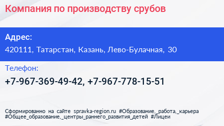 Компания по производству срубов по адресу 420111, Татарстан, Казань, Лево-Булачная, 30 в дальнейшем Организация, размещена в следующих категориях: