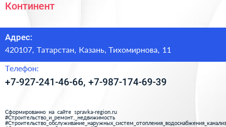 Континент по адресу 420107, Татарстан, Казань, Тихомирнова, 11 в дальнейшем Организация, размещена в следующих категориях:
