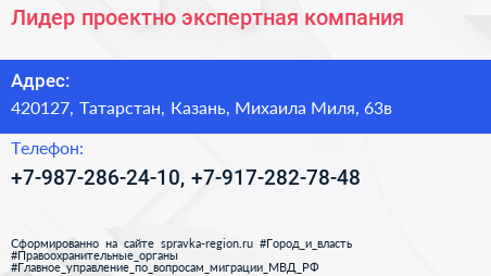 Лидер, проектно-экспертная компания по адресу 420127, Татарстан, Казань, Михаила Миля, 63в в дальнейшем Организация, размещена в следующих категориях: