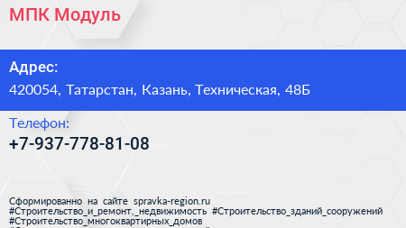 МПК.Модуль по адресу 420054, Татарстан, Казань, Техническая, 48Б в дальнейшем Организация, размещена в следующих категориях: