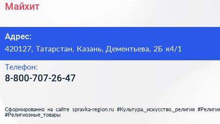 Майхит по адресу 420127, Татарстан, Казань, Дементьева, 2Б к4/1 в дальнейшем Организация, размещена в следующих категориях: