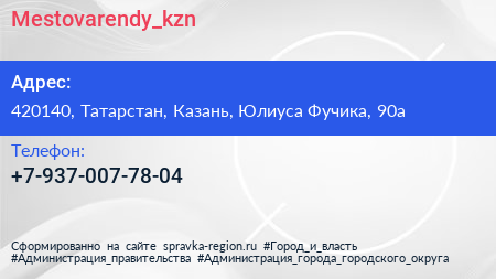 Mestovarendy_kzn по адресу 420140, Татарстан, Казань, Юлиуса Фучика, 90а в дальнейшем Организация, размещена в следующих категориях: