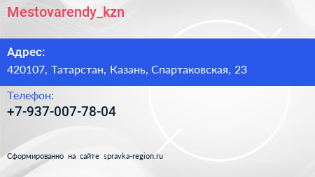 Mestovarendy_kzn по адресу 420107, Татарстан, Казань, Спартаковская, 23 в дальнейшем Организация, размещена в следующих категориях: