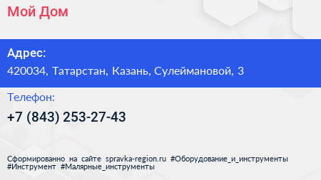 Мой Дом по адресу 420034, Татарстан, Казань, Сулеймановой, 3 в дальнейшем Организация, размещена в следующих категориях: