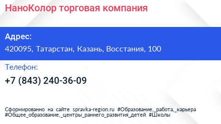 НаноКолор, торговая компания по адресу 420095, Татарстан, Казань, Восстания, 100 в дальнейшем Организация, размещена в следующих категориях: