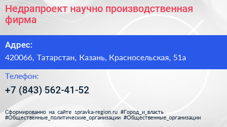 Недрапроект, научно-производственная фирма по адресу 420066, Татарстан, Казань, Красносельская, 51а в дальнейшем Организация, размещена в следующих категориях: