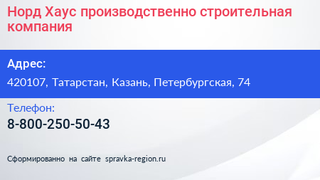 Норд Хаус, производственно-строительная компания по адресу 420107, Татарстан, Казань, Петербургская, 74 в дальнейшем Организация, размещена в следующих категориях:
