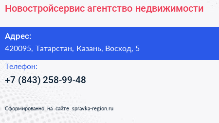 Новостройсервис, агентство недвижимости по адресу 420095, Татарстан, Казань, Восход, 5 в дальнейшем Организация, размещена в следующих категориях: