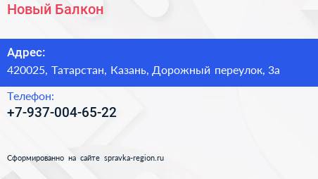 Новый Балкон по адресу 420025, Татарстан, Казань, Дорожный переулок, 3а в дальнейшем Организация, размещена в следующих категориях: