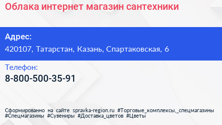 Облака, интернет-магазин сантехники по адресу 420107, Татарстан, Казань, Спартаковская, 6 в дальнейшем Организация, размещена в следующих категориях: