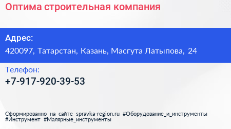 Оптима, строительная компания по адресу 420097, Татарстан, Казань, Масгута Латыпова, 24 в дальнейшем Организация, размещена в следующих категориях: