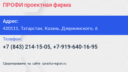 ПРОФИ, проектная фирма по адресу 420111, Татарстан, Казань, Дзержинского, 6 в дальнейшем Организация, размещена в следующих категориях: