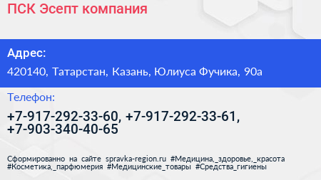 ПСК Эсепт, компания по адресу 420140, Татарстан, Казань, Юлиуса Фучика, 90а в дальнейшем Организация, размещена в следующих категориях: