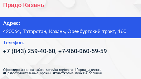 Прадо Казань по адресу 420064, Татарстан, Казань, Оренбургский тракт, 160 в дальнейшем Организация, размещена в следующих категориях: