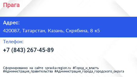 Прага по адресу 420087, Татарстан, Казань, Скрябина, 8 к5 в дальнейшем Организация, размещена в следующих категориях: