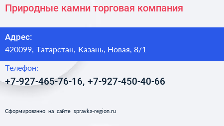 Природные камни, торговая компания по адресу 420099, Татарстан, Казань, Новая, 8/1 в дальнейшем Организация, размещена в следующих категориях: