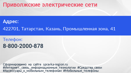 Приволжские электрические сети по адресу 422701, Татарстан, Казань, Промышленная зона, 41 в дальнейшем Организация, размещена в следующих категориях: