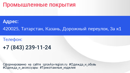 Промышленные покрытия по адресу 420025, Татарстан, Казань, Дорожный переулок, 3а к1 в дальнейшем Организация, размещена в следующих категориях: