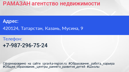 РАМАЗАН, агентство недвижимости по адресу 420124, Татарстан, Казань, Мусина, 9 в дальнейшем Организация, размещена в следующих категориях: