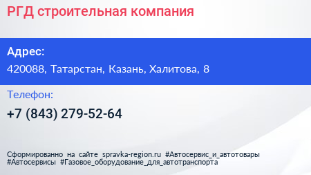 РГД, строительная компания по адресу 420088, Татарстан, Казань, Халитова, 8 в дальнейшем Организация, размещена в следующих категориях: