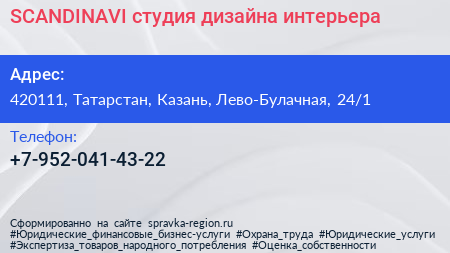 SCANDINAVI, студия дизайна интерьера по адресу 420111, Татарстан, Казань, Лево-Булачная, 24/1 в дальнейшем Организация, размещена в следующих категориях:
