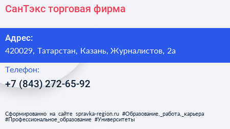 СанТэкс, торговая фирма по адресу 420029, Татарстан, Казань, Журналистов, 2а в дальнейшем Организация, размещена в следующих категориях: