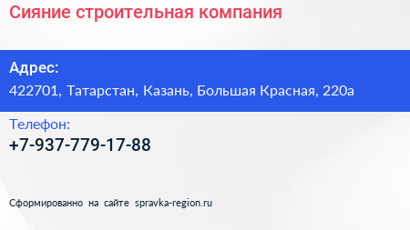 Сияние, строительная компания по адресу 422701, Татарстан, Казань, Большая Красная, 220а в дальнейшем Организация, размещена в следующих категориях:
