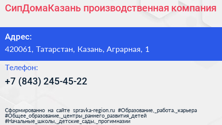 СипДомаКазань, производственная компания по адресу 420061, Татарстан, Казань, Аграрная, 1 в дальнейшем Организация, размещена в следующих категориях: