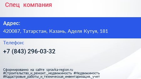 +Спец+, компания по адресу 420087, Татарстан, Казань, Аделя Кутуя, 181 в дальнейшем Организация, размещена в следующих категориях: