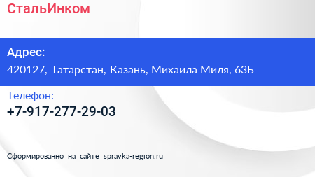 СтальИнком по адресу 420127, Татарстан, Казань, Михаила Миля, 63Б в дальнейшем Организация, размещена в следующих категориях: