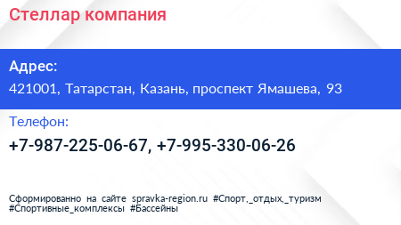 Стеллар, компания по адресу 421001, Татарстан, Казань, проспект Ямашева, 93 в дальнейшем Организация, размещена в следующих категориях: