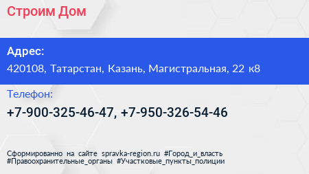 Строим Дом по адресу 420108, Татарстан, Казань, Магистральная, 22 к8 в дальнейшем Организация, размещена в следующих категориях:
