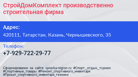 СтройДомКомплект, производственно-строительная фирма по адресу 420111, Татарстан, Казань, Чернышевского, 35 в дальнейшем Организация, размещена в следующих категориях: