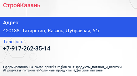 СтройКазань по адресу 420138, Татарстан, Казань, Дубравная, 51г в дальнейшем Организация, размещена в следующих категориях:
