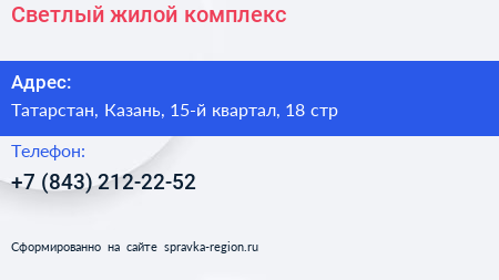 Светлый, жилой комплекс по адресу Татарстан, Казань, 15-й квартал, 18 стр в дальнейшем Организация, размещена в следующих категориях: