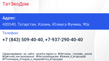 ТатЭкоДом по адресу 420140, Татарстан, Казань, Юлиуса Фучика, 90а в дальнейшем Организация, размещена в следующих категориях: