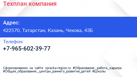 Техплан, компания по адресу 422570, Татарстан, Казань, Чехова, 43Б в дальнейшем Организация, размещена в следующих категориях: