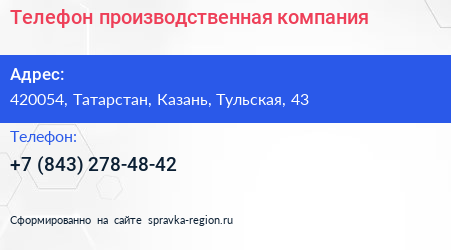 Телефон, производственная компания по адресу 420054, Татарстан, Казань, Тульская, 43 в дальнейшем Организация, размещена в следующих категориях: