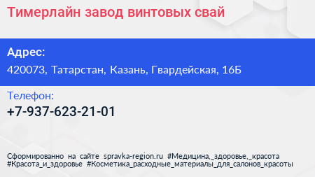 Тимерлайн, завод винтовых свай по адресу 420073, Татарстан, Казань, Гвардейская, 16Б в дальнейшем Организация, размещена в следующих категориях: