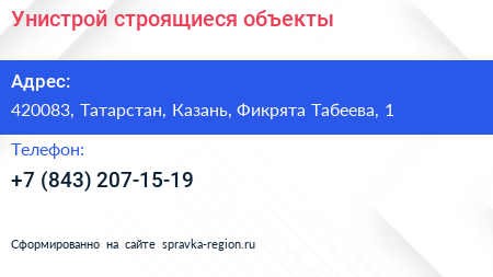 Унистрой, строящиеся объекты по адресу 420083, Татарстан, Казань, Фикрята Табеева, 1 в дальнейшем Организация, размещена в следующих категориях:
