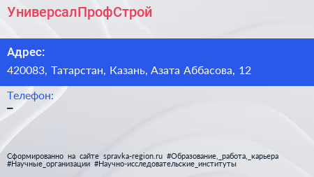 УниверсалПрофСтрой по адресу 420083, Татарстан, Казань, Азата Аббасова, 12 в дальнейшем Организация, размещена в следующих категориях: