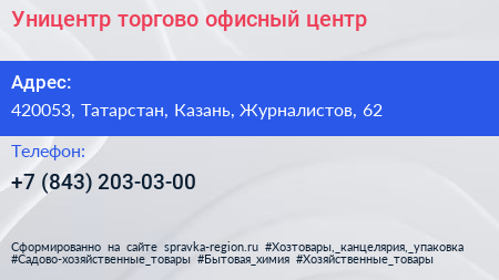 Уницентр, торгово-офисный центр по адресу 420053, Татарстан, Казань, Журналистов, 62 в дальнейшем Организация, размещена в следующих категориях:
