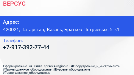 ВЕРСУС по адресу 420021, Татарстан, Казань, Братьев Петряевых, 5 к1 в дальнейшем Организация, размещена в следующих категориях:
