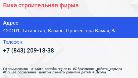 Вика, строительная фирма по адресу 420101, Татарстан, Казань, Профессора Камая, 8а в дальнейшем Организация, размещена в следующих категориях: