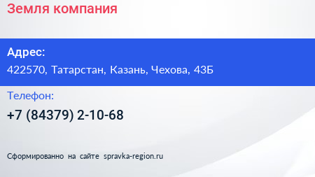 Земля, компания по адресу 422570, Татарстан, Казань, Чехова, 43Б в дальнейшем Организация, размещена в следующих категориях: